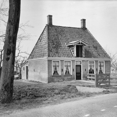 Links een stolpvormige aanbouw met uitgebouwd vooreind, ca.1900.