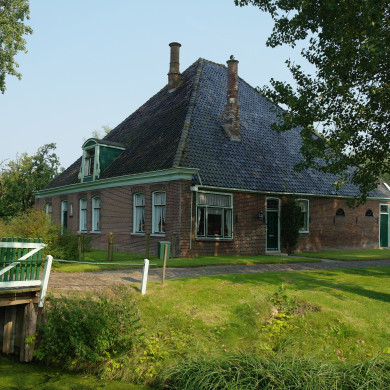 Stolpboerderij met drie ronde sierschoorstenen; in de voorste een jaartalsteen 1886. Aan de voorzijde een lijstgevel, aan weerszijden afgesloten door lisenen en een dakkapel met wangstukken en segmentvormige bekroning.