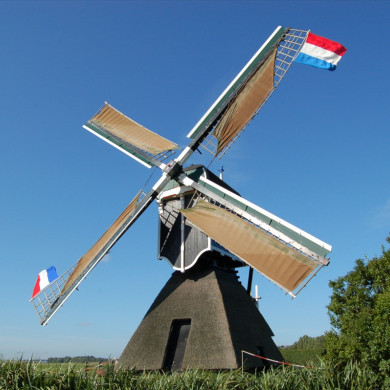 Molen. Type wipmolen (1652 ?) Gedekt met riet op lage stenen voet.