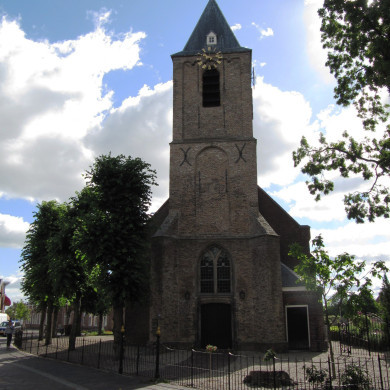 Ned.Herv.Kerk, gebouwd 1894 in traditionele trant bij vroeg 16e eeuwse toren. Eenvoudig zaalkerkje van vier traveeën met spitsboogvensters, steunberen en muizetandfriezen, onder met leien gedekt zadeldak met dakkapellen, klein roosvenster in top achtergevel.
