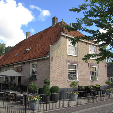 HERBERG "De Gouden Star". Boerenhuis onder pannen wolfdak, rechts onderkelderd en met zolderverdieping. Vensters met zes- en twaalf-ruitsschuiframen. Blijkens klezoortje uit de 18e eeuw; doch met een gevelsteen: 1837.