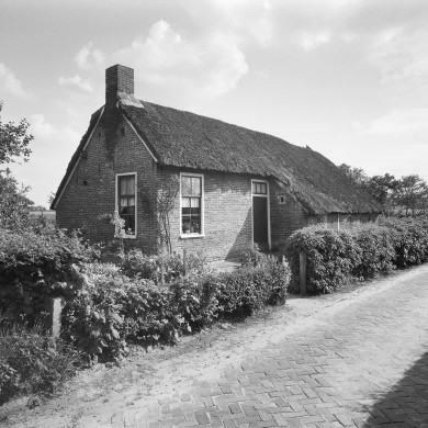Boerderij XIX A. Woongedeelte met rechte eindgevel; bedrijfsgedeelte haaks op het woongedeelte.