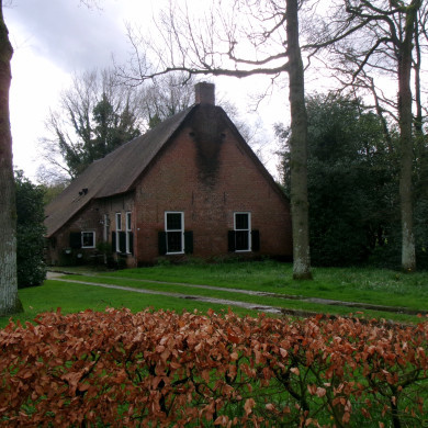Boerderij, XVIII d, met twee zijbaanders, woongedeelte met ramen met kalf en roedenverdeling.