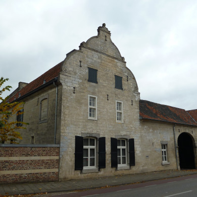 Hoeve met binnenplaats, grotendeels van mergel. Aan de straat twee in- en uitgezwenkte gevels, resp. 1710 en 1709. Inwendig schouw met stucboezem in Lodewijk XV-stijl.