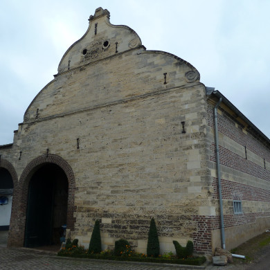 PAND, deel uitmakend van de herenhoeve "Bockhof". Schuur van baksteen en mergel met trede voluutgevel uit 1751.
