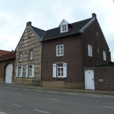 Hoeve gelegen rond een binnenplaats met aan de rechterzijde de woonvleugel onder zadeldak, 1802; de topgevel aan de straatzijde is opgebouwd uit een afwisselende gelaagdheid van baksteen en mergel en voorzien van een gevelsteen. Aan de straatzijde bevindt zich een vleugel onder een zadeldak met een toegangspoort. De langsgevel van deze vleugel is geheel van baksteen en is verder blind gelaten. De topgevel is geheel van mergel met bovenin een kleine ronde opening. De punt is afgezet met een rand en verlevendigd met enkele platte, even buiten de punt uitstekende lagen; midden 19de- eeuws. Aan de achterzijde bevindt zich een vakwerkschuur met een deels bakstenen eindgevel, voorzien van een strook van mergel; 18de-eeuws. Tussen de voor- en achtervleugel bevindt zich een smalle tussenvleugel, waarvan alleen de buitenmuur nog 19de-eeuws is, bestaande uit baksteen van groot formaat met halverwege een strook van mergel. Van belang als typisch, authentiek voorbeeld van een hoeve met gesloten buitenzijde, en in belangrijke mate bepalend voor het straatbeeld.