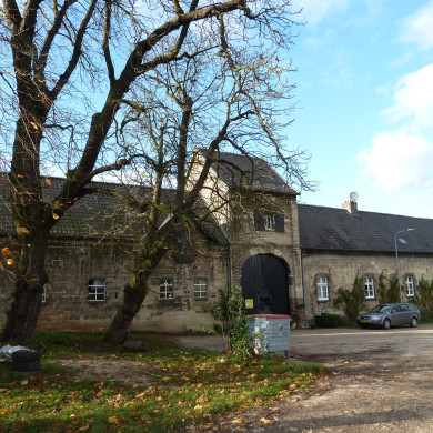 Hoeve Lindelauf; twee bakstenen vleugels haaks op elkaar; met tussendorpelvensters van Naamse steen en kalksteen; ankerjaartallen 1641 en 1652.