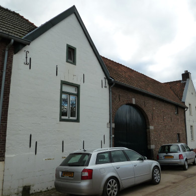 Hoeve met binnenplaats, grotendeels van baksteen en met puntgevel van mergel; op poort sluitsteen 1797.