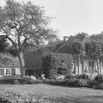 Typisch Veluws keuterijtje onder rieten wolfdak en met gepleisterde voorgevel, waarin een venster met luiken en negenruitsschuifraam. Waarschijnlijk vroeg 19e eeuws.