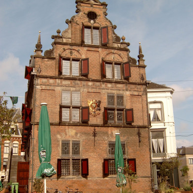 Rechthoekig, van baksteen opgetrokken gebouw met verdieping en hoog zadeldak, afgesloten door topgevels met grote trappen. Gebouwd in 1612 in renaissancevormen, verwant aan de stijl van Hendrik de Keyser; de verdieping aanvankelijk ingericht als hoofdwacht.