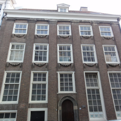 PATRICIERSHUIS met twee verdiepingen en schilddak, breedte vijf vensterassen, midden 17e eeuw.