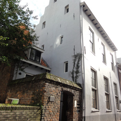 "Besiendershuis". Laat-gotisch woonhuis van het Nederrijnse type met zadeldak, evenwijdig aan de straat, tussen trapgevels aan de korte zijden. Geprofileerde waterlijsten, vensters met kruiskozijnen, gevat binnen korfbogige nissen of met ontlastingsbogen; vorkankers. Gerestaureerd 1941-'44.