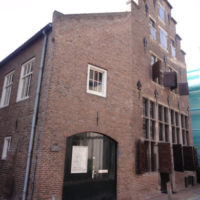 "Brouwershuis". Pand onder zadeldak en met trapgevel, voorzien van geprofileerde dekplaten op de trappen, ontlastingsbogen met blokken en sierankers, tweede helft 16e eeuw. Onderpui met geprofileerde, natuurstenen waterlijst, vensters met oude roedenverdeling en natuurstenen poortje met gebeeldhouwde latei met opschrift, wapen en jaartal 1621, gedragen door consoles. In restauratie 1966.