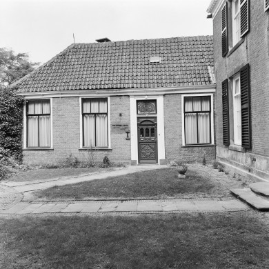 Grote sociëteit. Gepleisterd verdiepingloos pand met zandstenen deuromlijsting XVIIId en gevelsteen voor J.W.Racer. Houten inrijpoort in gevelgedeelte van vakwerk met baksteenvulling.