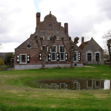 Hoeve "De Roze". Beneden de dijk, juist ten noorden van het dorp. Woonhuisgedeelte met in- en uitgezwenkte topgevel met toppilaster en jaarankers 1636. Gedeeltelijk gewijzigde kruisvensters met in zandloper geschilderde onderluiken. Korfbogen boven de vensters restanten van boogpoortje. Aangebouwde achterliggende schuur. Zomerhuis met pannendak en gepleisterde gevels. Jaarankers 679., 35-ruits schuifvensters.