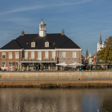 Stadhuis. Rechthoekig gebouw onder schilddak met dakruiter, 1828; aan de Vechtzijde na de oorlog aanzienlijk uitgebreid.