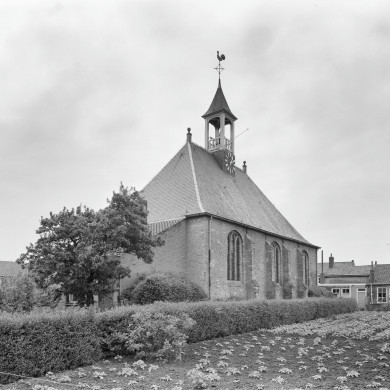 N.H.Kerk. Bescheiden vrijstaand zaalkerkje, schilddak en dakruiter en bolpirons. Aan de zuidzijde consistorie aangebouwd onder lessenaarsdak. Klokkenstoel met klok van J.A. de Grave, 1720, diam. 64 cm.