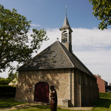 HOEVE aan oprijlaan. Woonhuis onder zadeldak; voordeur in gepleisterde langsgevel; 9-ruits schuifvensters met luiken behangen. Wagenschuur gedeeltelijk hout, gedekt met pannen zadeldak. Eveneens vrijstaand stenen met pannen gedekt stalgebouw.
