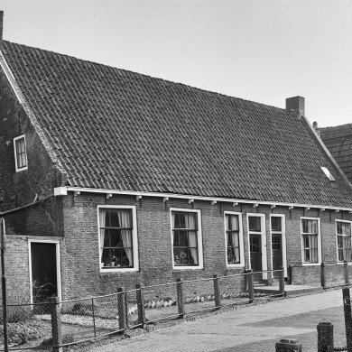 Twee woonhuizen van één bouwlaag onder één zadeldak tussen topgevels.