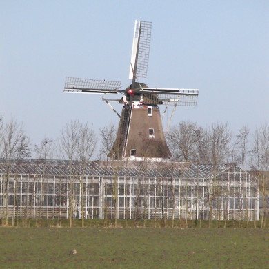 Vroeg 19e eeuws dwarshuis onder hoog, met pannen gedekt zadeldak dat aan de beide korte zijden aansluit tegen puntgevels met rollagen. De voorgevel heeft vensters met 12-ruitsschuiframen, een houten kroonlijst en daarboven een dakkapel met fronton. Op het zadeldak hoekschoorstenen.