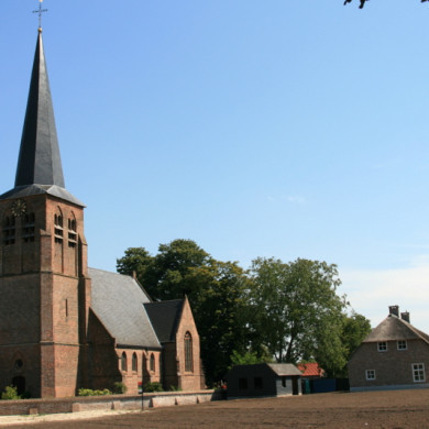Voormalige R.K. Kerk van St. Willibrord. Zeer mooie en goed geproportioneerde dorpskerk, opgetrokken van baksteen in de eerste helft van de 15e eeuw, bestaande uit een schip met lagere zijbeuken onder een zadeldak, een dwarspand, een smaller 3/8 gesloten koor en een toren met overhoekse steunberen aan de west-, een haakse aan de zuid- en een vierkante traptoren aan de noordzijde; deze toren heeft drie geledingen met spaarvelden en bovenin galmgaten, en een hoge, van vier- tot achtkant ingesnoerde spits. Inwendig zuilen met lijstkapitelen en houten tongewelven. Gerestaureerd in 1958. Mechanisch smeedijzeren torenuurwerk, 17de eeuw?