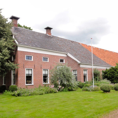 BOERDERIJ van het Oldambtster type met ingang opzij. Beganegronds overal zesruitsvensters.