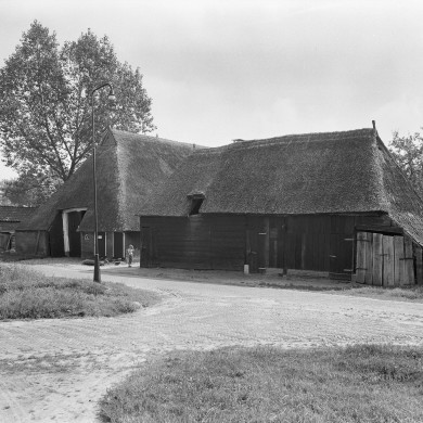 Boerderij met achterbaander en grote vrijstaande houten bijschuur.