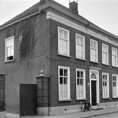 Herenhuis in Empire trant, zesdelige schuiframen, bovenlicht boven de deur met uitwaaierde palmetten. Eerste helft 19e eeuw.