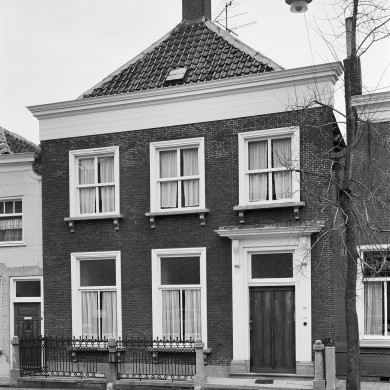 Linker gedeelte van een breed herenhuis, bestaande uit acht vensterassen, met verdieping en schilddak, evenwijdig aan de straat. Houten kroonlijst; eenvoudige deuromlijsting met pilasters en hoofdgestel; vensters met hardstenen dorpels en zesruitsschuiframen. Deur met panelen. Midden 19e eeuw.