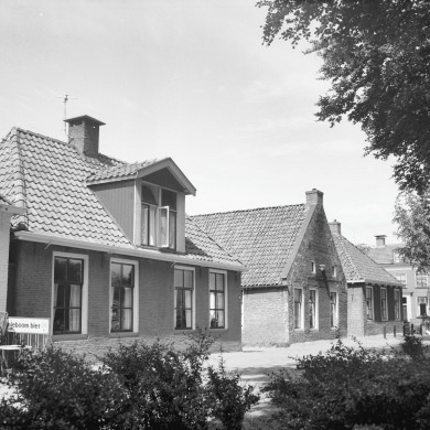 Eenvoudige woning onder zadeldak met voorschild en topschoorsteen. Zesruitsvensters.