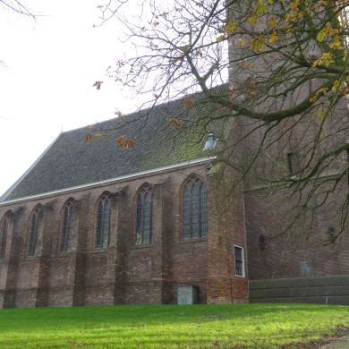 Toren der Herv. Kerk. De beide onderste geledingen bestaan behoudens de beklamping van 1886 uit metselwerk van kort na 1472; de detaillering van deze geleding overeenkomstig de oorspronkelijke toestand. Derde geleding met balustrade en spits zijn in 1886 aangebracht.