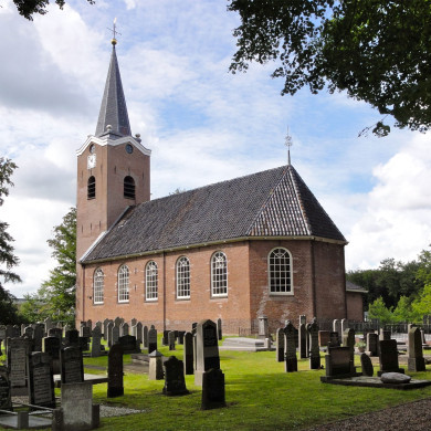 Herv. Kerk op omheind kerkhof. Eenvoudig kerkgebouw uit 1803; in de kerk mooie 17e eeuwse preekstoelkuip en achterschot en koperen lezenaar, 17e eeuwse gebeeldhouwde zerken. Drie koperen kronen en twee lichtarmen. Eenklaviers orgel in 1856 gemaakt door L. van Dam en Zonen. Klokkenstoel met klok van C. Crans, 1739, diam. 74,5 cm. Mechanisch torenuurwerk Haak, Gebr. Caminada en Dupont, Rotterdam, eerste kwart 20ste eeuw.