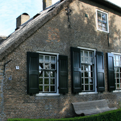Gedeeltelijk nog vensters met kleine roedenverdeling.