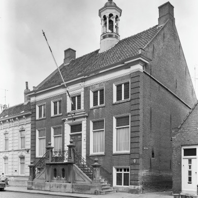 Raadhuis. Rechthoekig bakstenen gebouw uit 1776, met koepeltje op het dak.