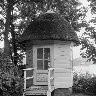 In de tuin van de pastorie theekoepel, van eenvoudige late architectuur, doch van historische waarde.