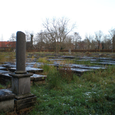 Portugees-Israëlitische BEGRAAFPLAATS, 1614, met oude zerken, gebouwtje op begraafplaats, 18e eeuw. Hek aan de oude Amstel, 18e eeuw.