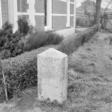 Een hardstenen GRENSPAAL uit de 17e eeuw, waarin de letters: Z.H. en O.W.