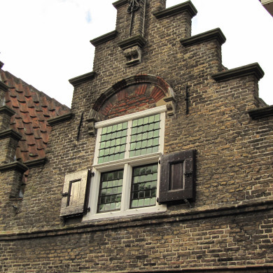 PANDJE met trapgevel, eerste helft 17e eeuw, gerestaureerd. Geprofileerde, natuurstenen waterlijsten, boven het zoldervenster een geprofileerde en geblokte ontlastingsboog op kraagsteentjes. Toppilaster met sieranker op console.