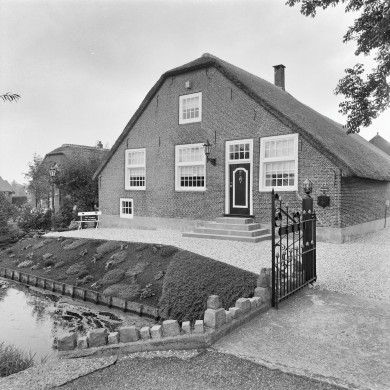 Boerderij. Woonhuis en bedrijfsgedeelte in lengterichting aaneengebouwd onder met riet gedekt afgewolfd zadeldak. Voorgevel woonhuis met schuifvensters.
