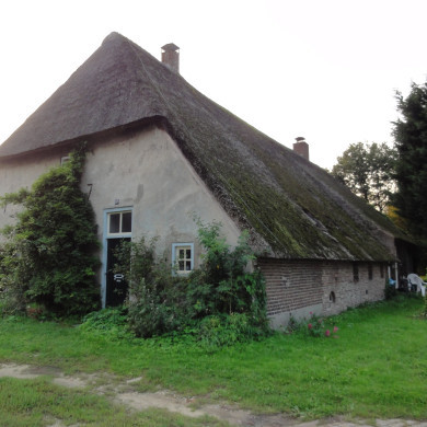 Boerderij, blijkens jaartalankers in de gepleisterde voorgevel uit 1671. Met riet en pannen gedekt wolfdak.