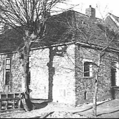 Restant van het huis te Peize. Ten dele opgetrokken van grote moppen. In een der gevels een wapensteen met twee wapens en "Anno 1706".