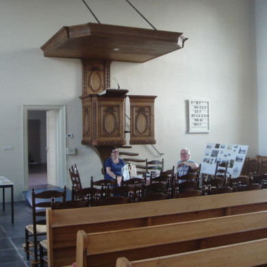 Ned. Herv. Kerk. 19e eeuws zaalgebouw met mansarde dak. Inventaris. Eenklaviers orgel. in 1879 gemaakt door H.G. Holtgrave.