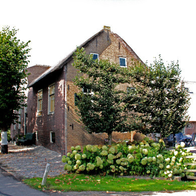 Boerderij, dwarshuis, fraai 17e eeuws. Topgevels.