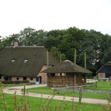 Eenvoudige Veluwse boerderij, van karakter XIXb, onder een hoog met riet en pannen gedekt wolfdak en met gepleisterde gevels. De voorgevel heeft een bewerkte daklijst en vensters met luiken en zesruitsschuiframen. De hoeve is landschappelijk fraai gelegen aan de grote weg.