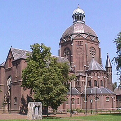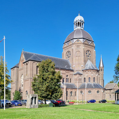 St. Bavo, geconsacreerd 1889, Ch. Weber. Kruisbasiliek in romano-gotische trant met klaverbladvormige oostpartij, waarbij zowel de eindgevels van het transept als het koor een apsis met omgang hebben. Koepeltoren op pendentiefs boven de achthoekige kruising, westtorens onvoltooid. Het in verscheidene kleuren baksteen uitgevoerde interieur heeft een alternerend stelsel van pijlers en zuilen. Koepelgewelven over het schip. In de toren is het oude mechanische torenuurwerk, in complete staat, nog aanwezig, 1894, buiten gebruik gesteld. Orgel in 1930 vervaardigd door B. Pels & Zonen met twee manualen en pedaal.