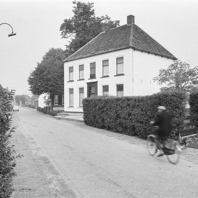 Witgepleisterd laat 18e eeuwse of vroeg 19e eeuws huis op rechthoekige plattegrond, met verdieping en pannen schilddak met hoekschoorstenen.