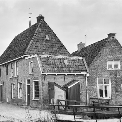 Achter 98-100 gelegen kaas(?)pakhuis met woning onder schilddak.
