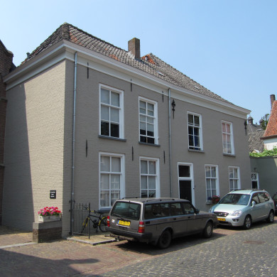 Huis met overbouwing van de oudere poort die de St.Luciastraat afsluit. Was poortgebouw van het in 1818 gesloopte kasteel. De poort vertoont metselwerk van zware moppen, ontlastende bogen in de muren en een vlak tongewelf.