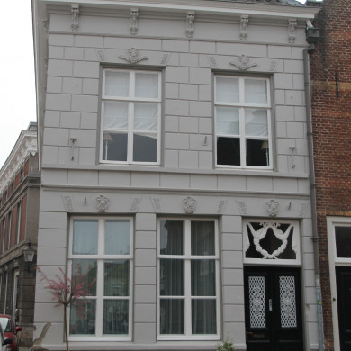Is de achterkant van Marktstraat 5. Gepleisterde topgevel.