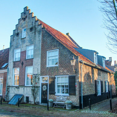 Fraai HUIS met hoog schilddak. Roze gepleisterde lijstgevel, ramen met kleine roedenverdeling, ingangspartij in empire stijl met deur uit die tijd. Kroonlijst op consoles dakkapel. Gevelsteen: '1808 den 19 july is den eersten steen gelegd door de jonge juffrouw T.F.W. Serwier'.